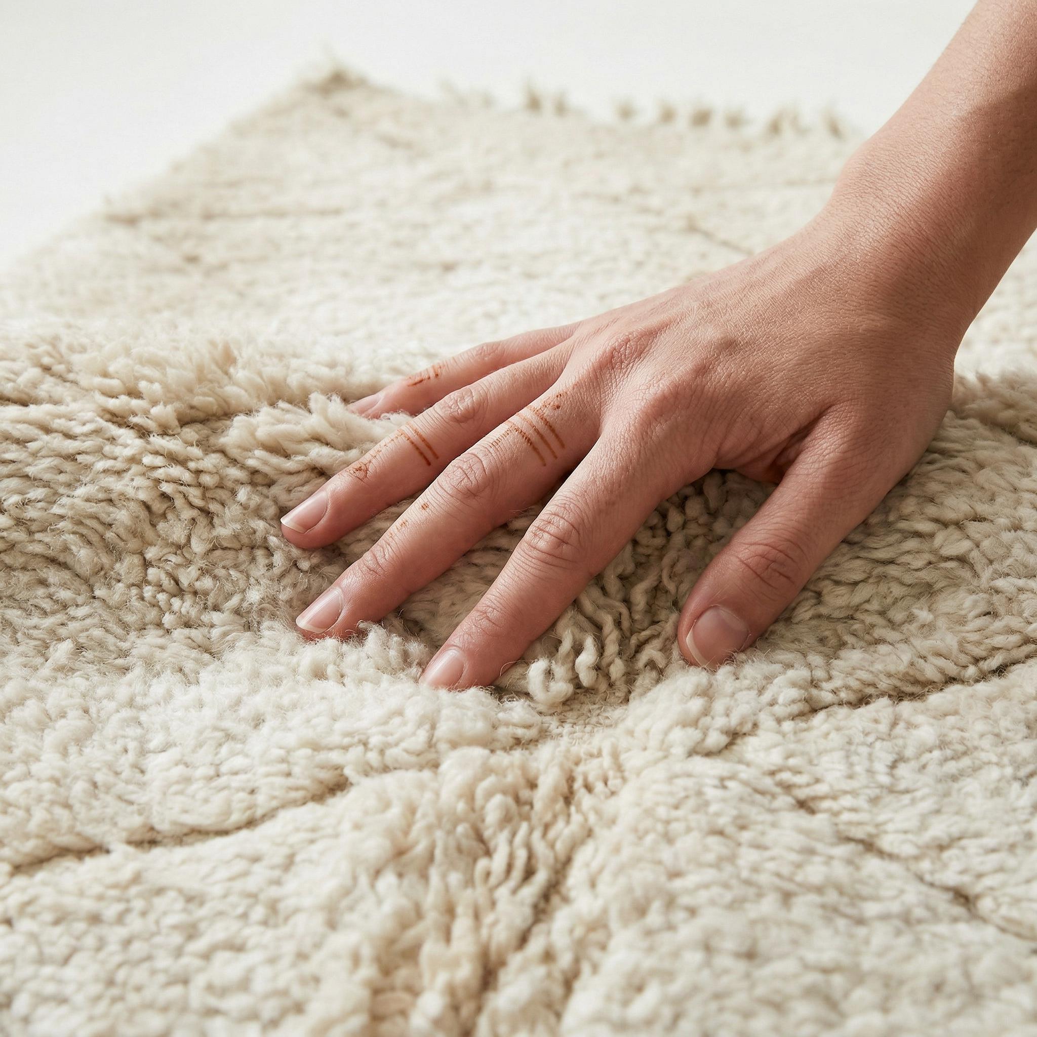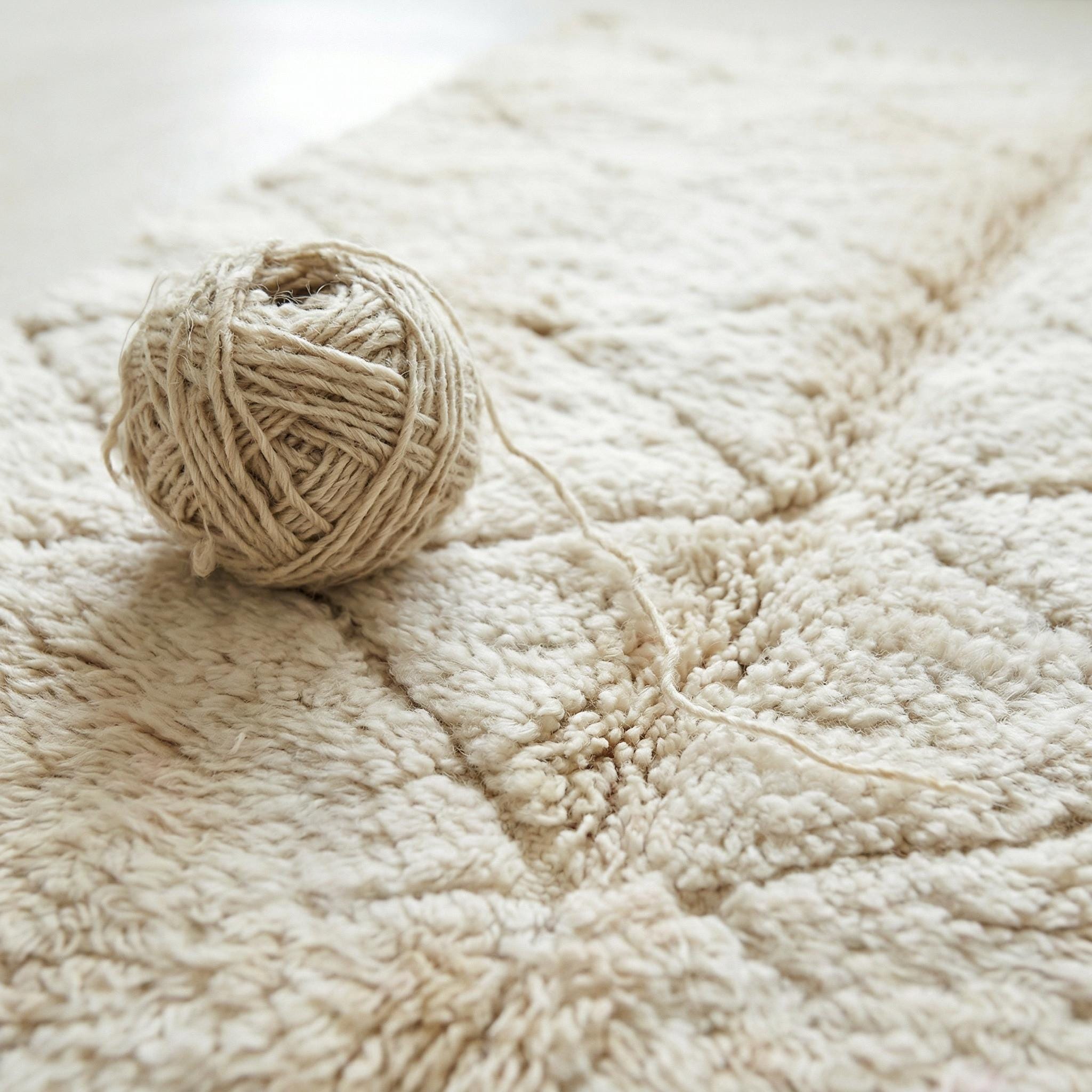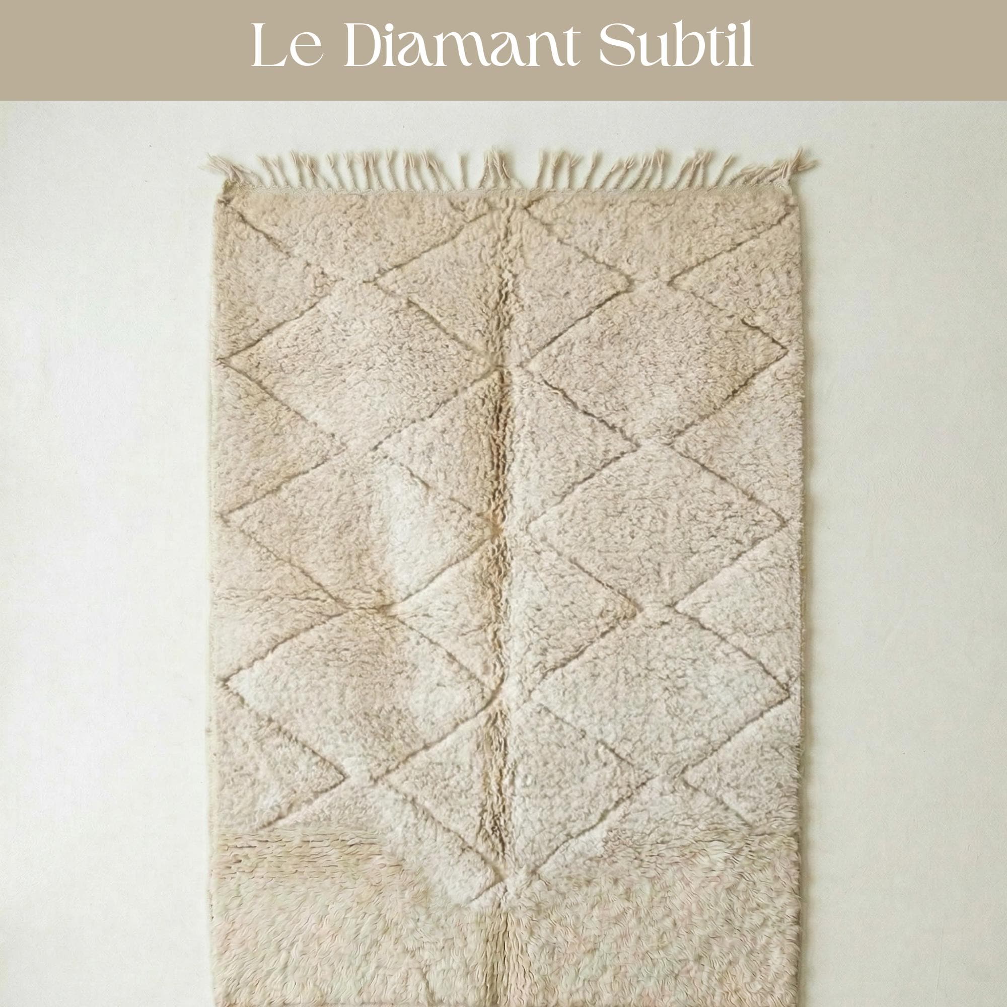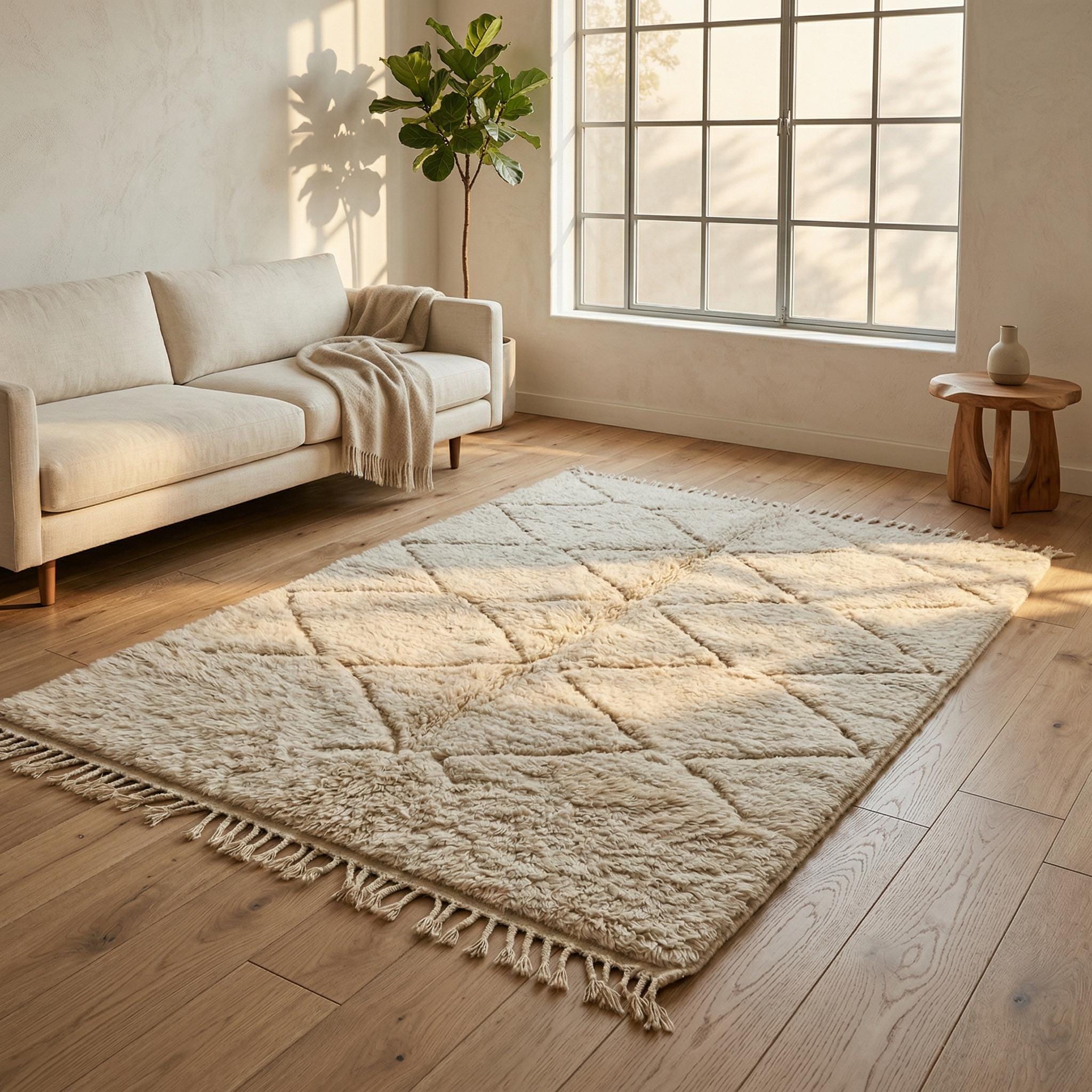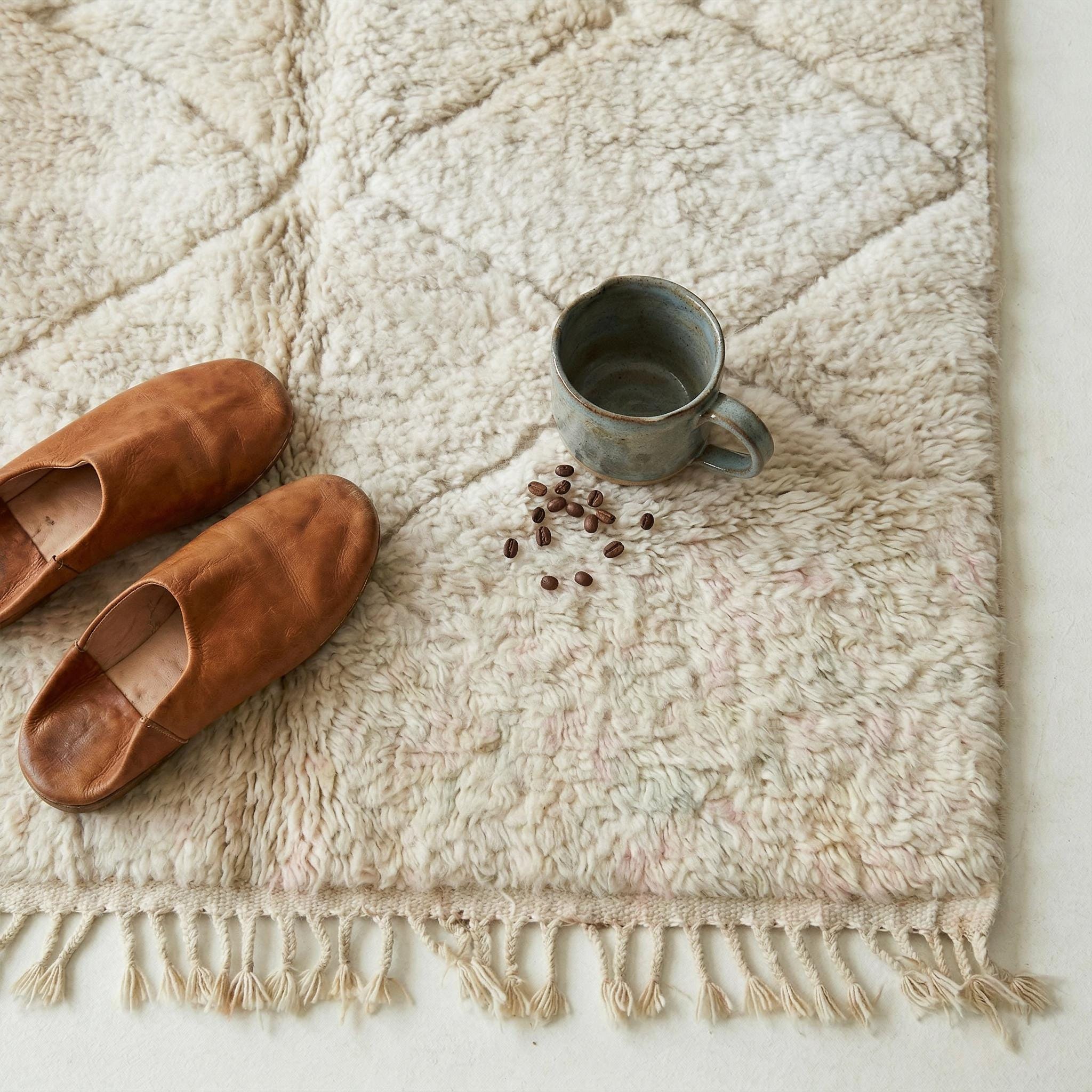 It’s the perfect choice for someone who wants the classic geometry of a Beni Ourain without the bold contrast of dark lines. It instantly elevates a neutral room, adding deep texture, quiet character, and a sense of complete calm.