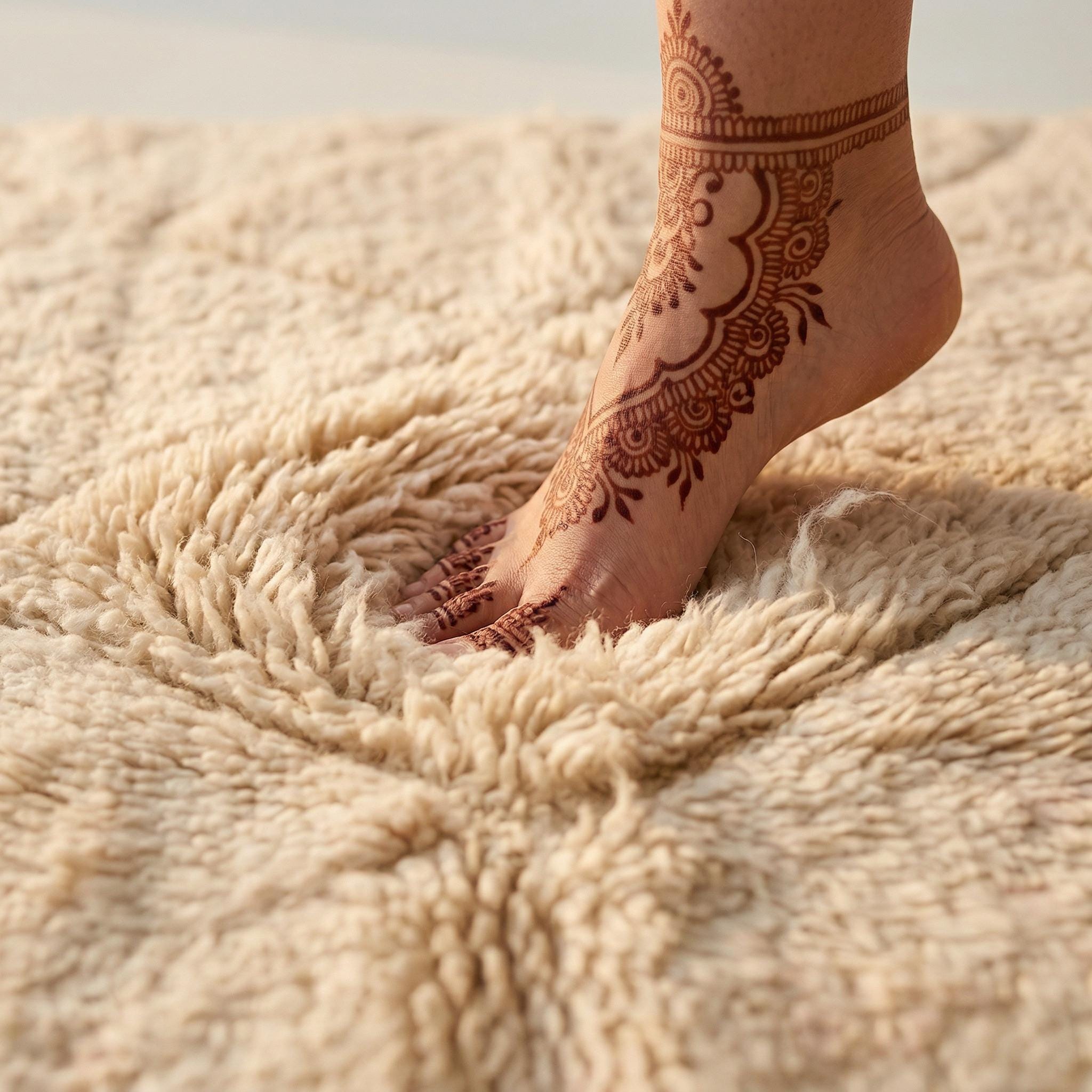 If you want to bring a serene, textural elegance into your home, this tone-on-tone Moroccan rug is the answer. It acts as a quiet, inviting anchor for a minimalist living room or a peaceful bedroom, proving that you don't need contrasting colors to make a strong design impression. Whether used in a coastal home, a Japandi sanctuary, or a modern flat, this plush textured rug offers unmatched comfort and style.