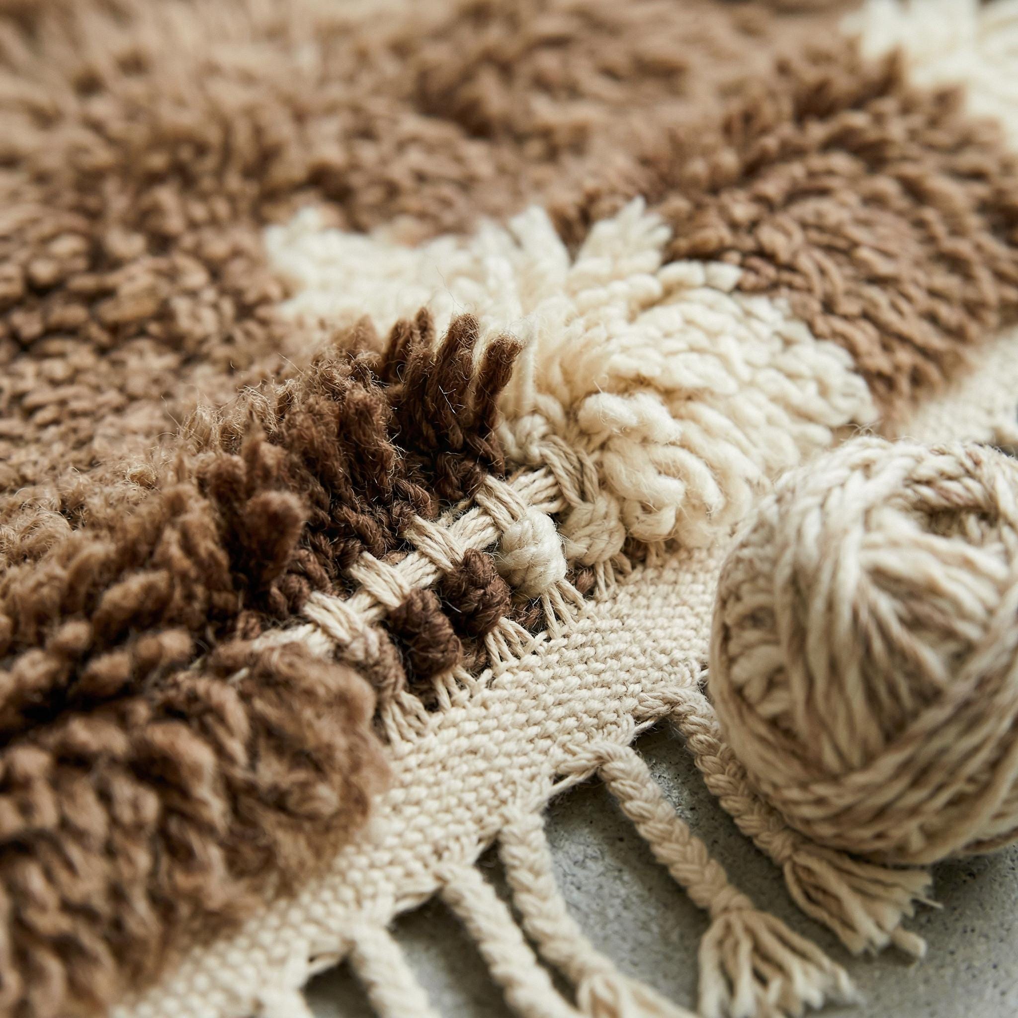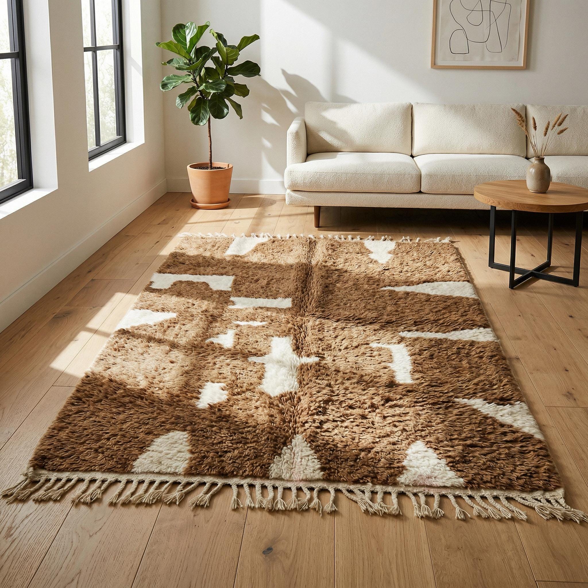 Brown and Cream Abstract Moroccan Rug | Modern Color Block Wool Shag | Earthy Beni Ourain Carpet | Custom Handmade Geometric Area Rug